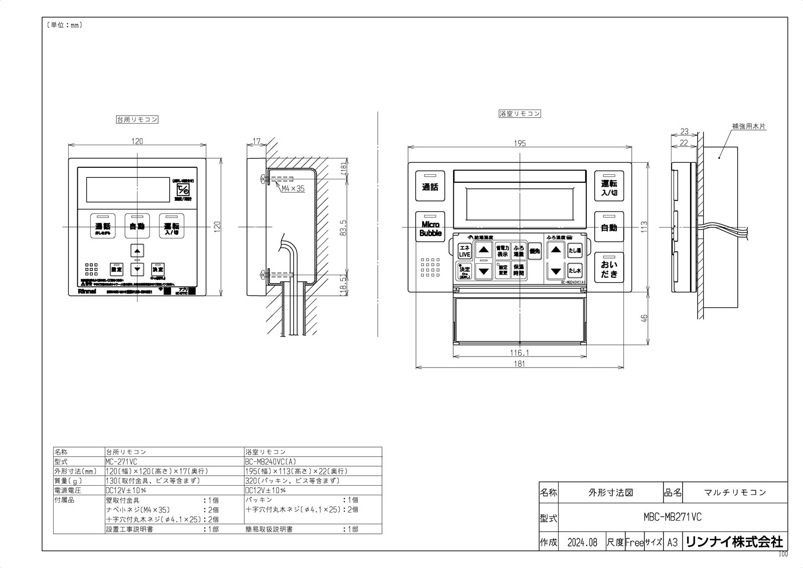 型式名:MBC-MB271VC