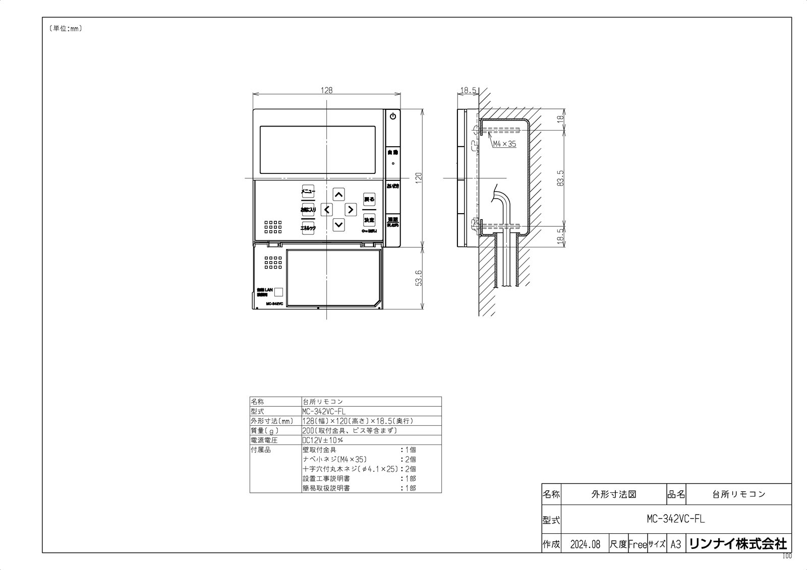 付属部品:壁取付金具:1個 ナベ小ネジ(M4×35):2個 十字穴付丸木ネジ(φ4.1×25):2個