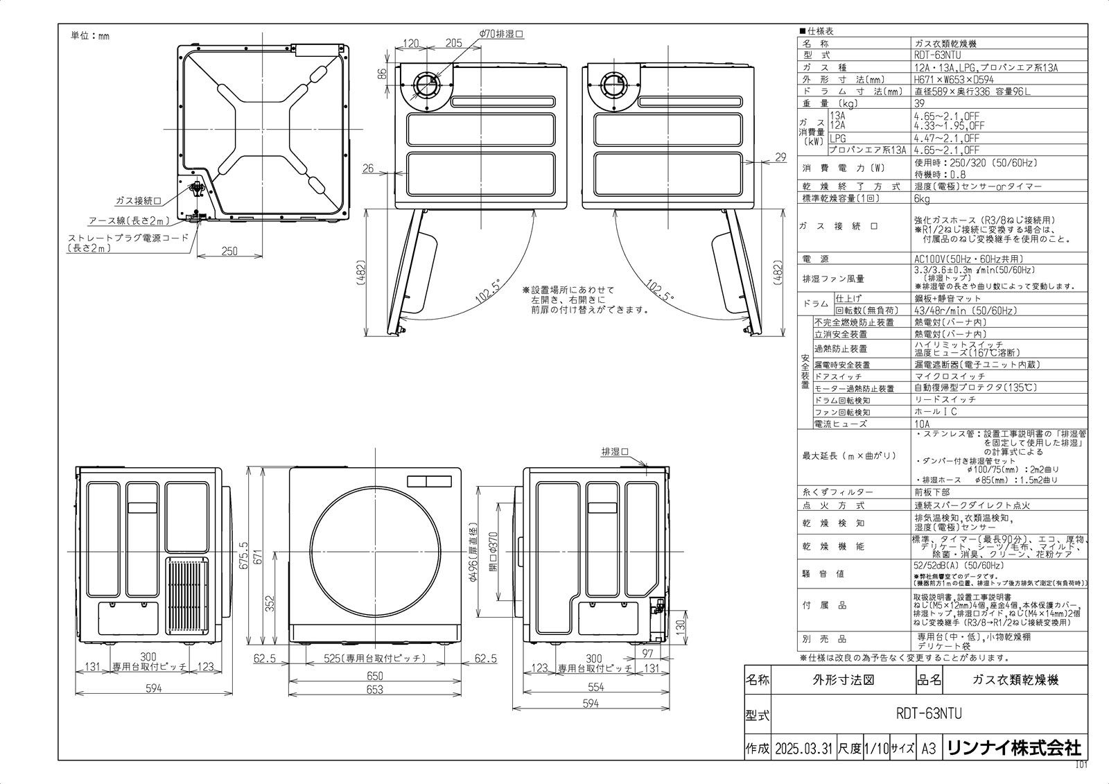 仕向先名:リンナイ