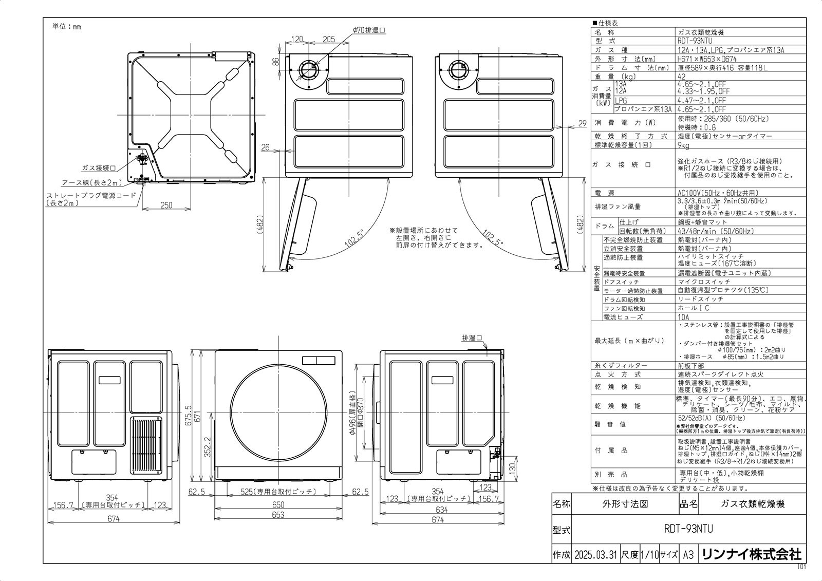 仕向先名:リンナイ
