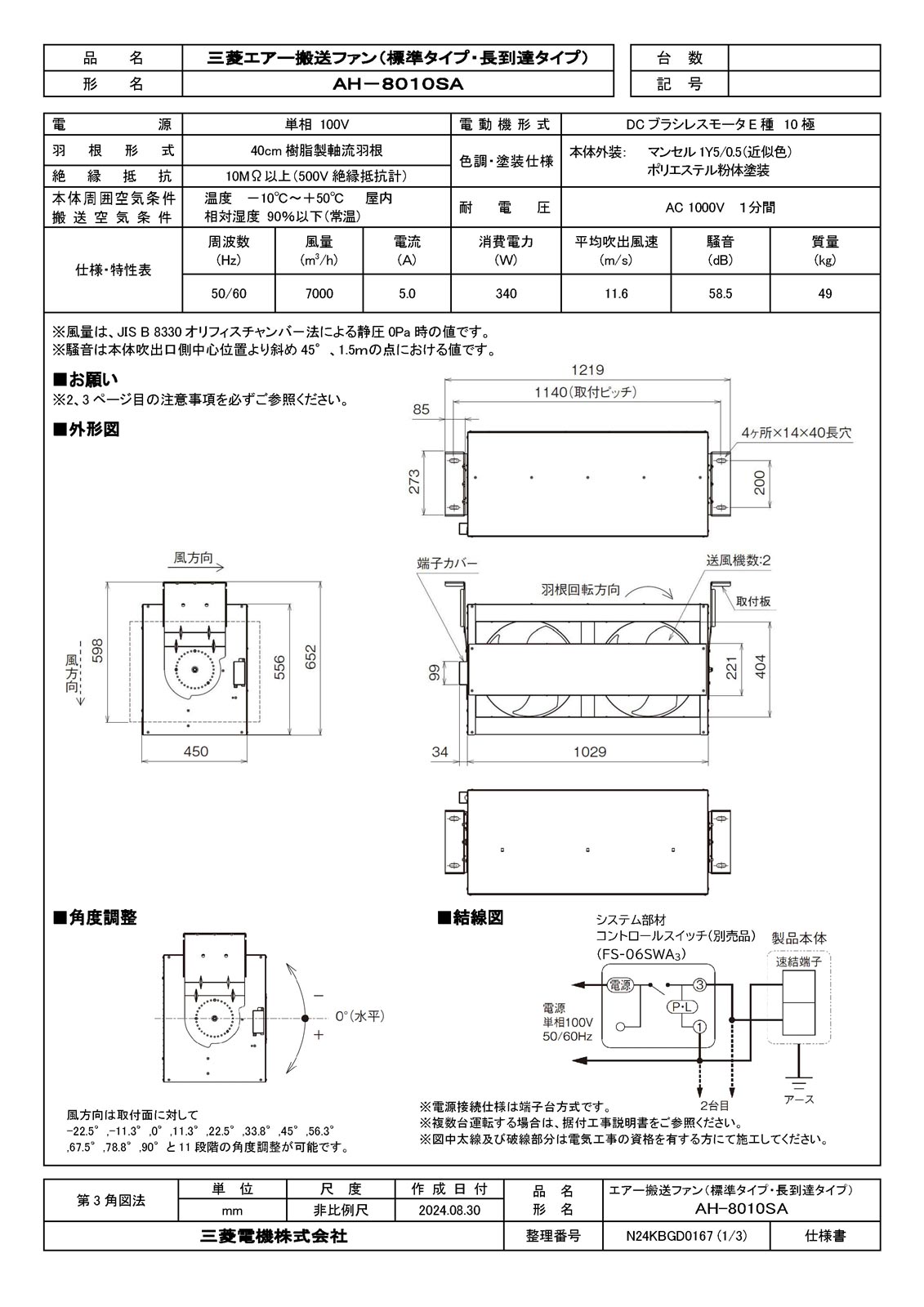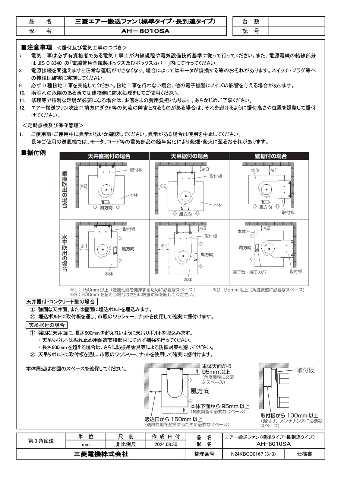 エアー搬送ファン 標準タイプ 長到達タイプ