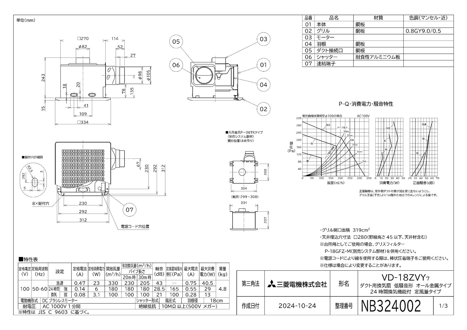 ダクト用換気扇 天井埋込形 定風量オール金属タイプ