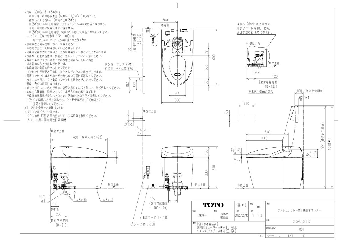 ウォシュレット一体形便器 ネオレスト RS1 床排水 リモデル対応 排水芯120/200mm 標準リモコン 寒冷地仕様