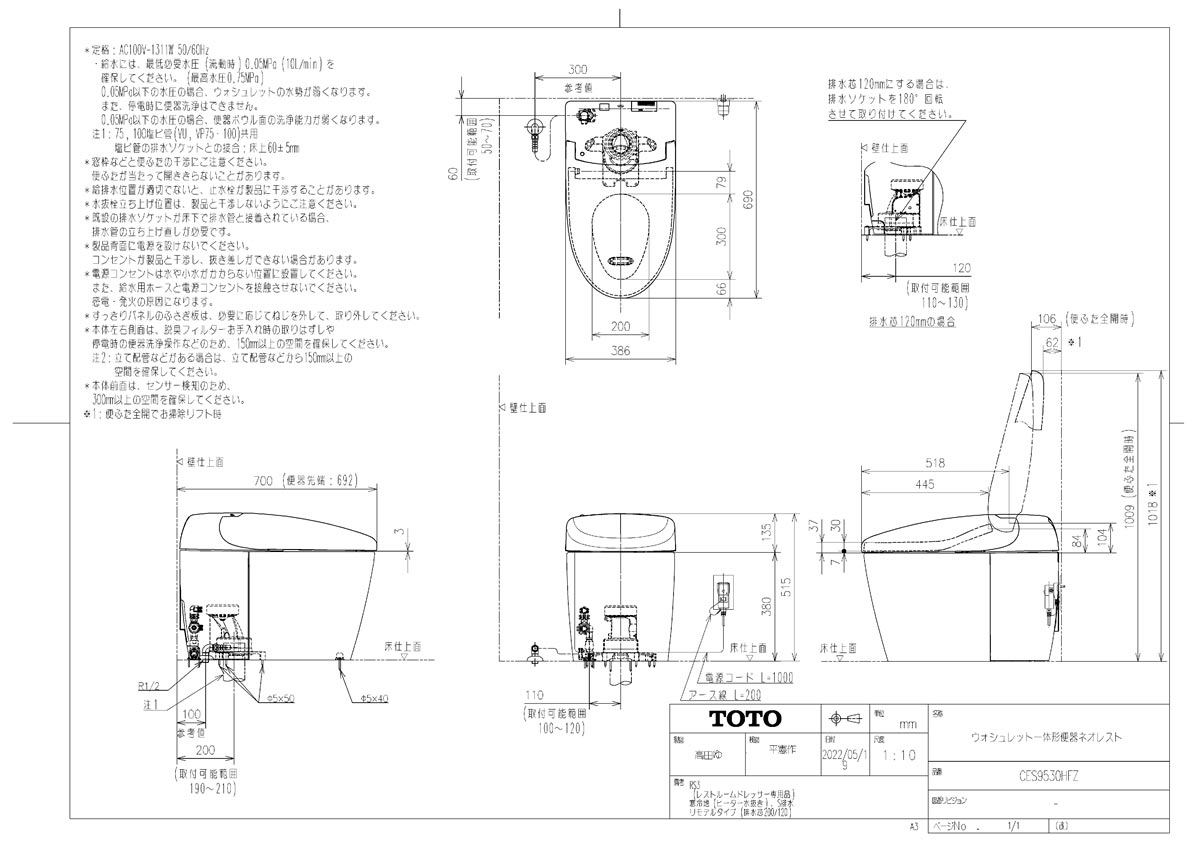 ウォシュレット一体形便器 ネオレスト RS3 レストルームドレッサー専用 床排水 リモデル対応 排水芯120/200mm 寒冷地仕様