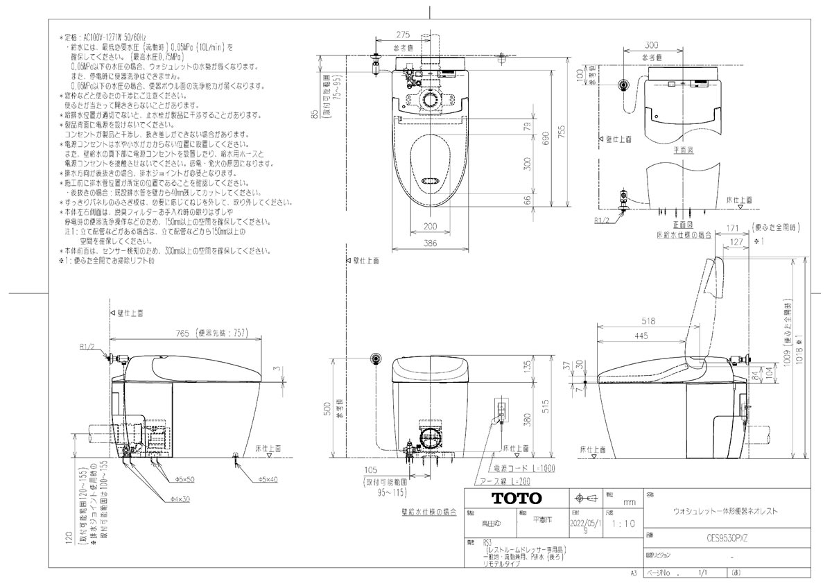 ウォシュレット一体形便器 ネオレスト RS3 レストルームドレッサー専用 壁排水 リモデル対応 排水芯120-155mm