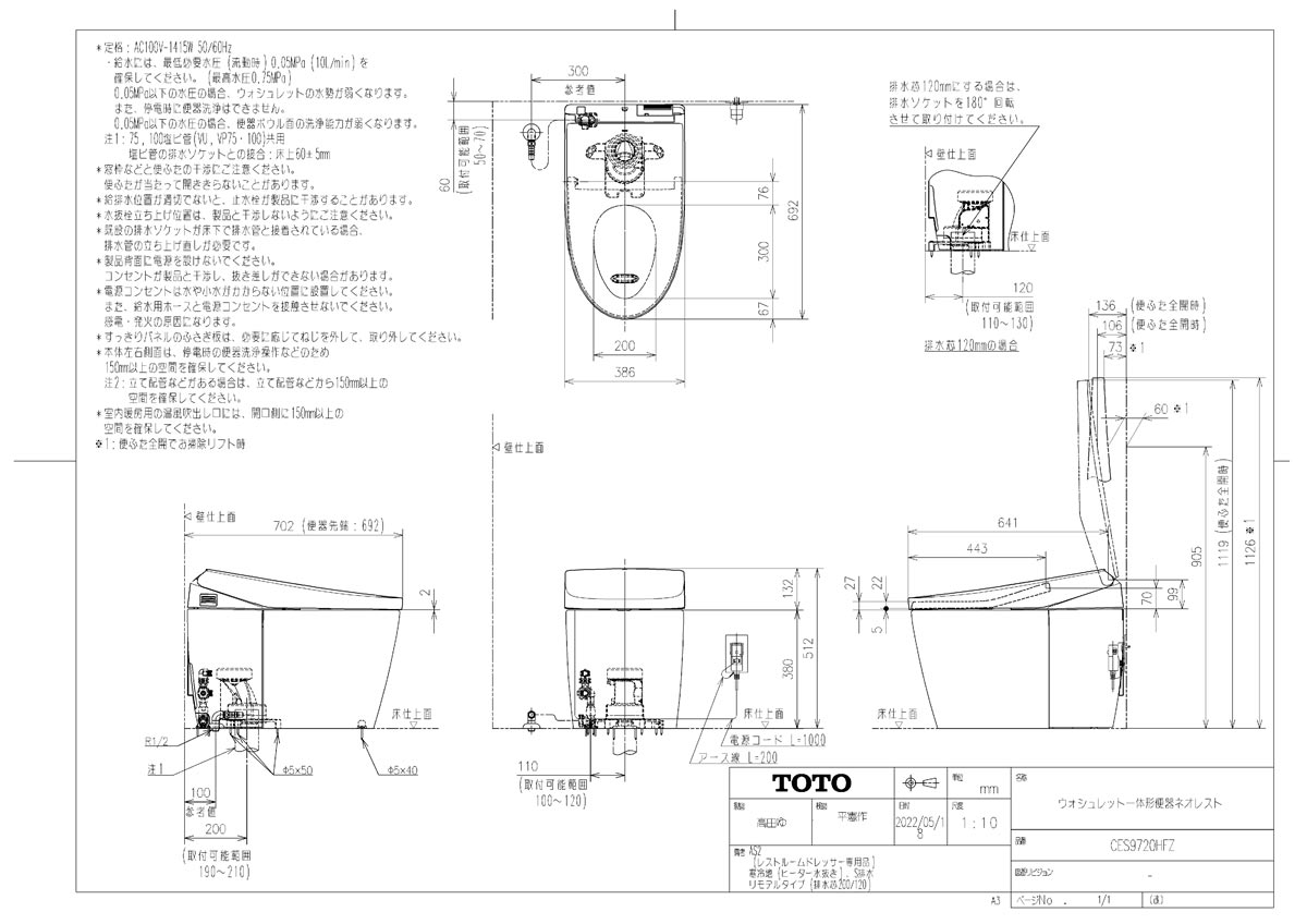 ウォシュレット一体形便器 ネオレスト AS2 レストルームドレッサー専用 床排水 リモデル対応 排水芯120/200mm 寒冷地仕様