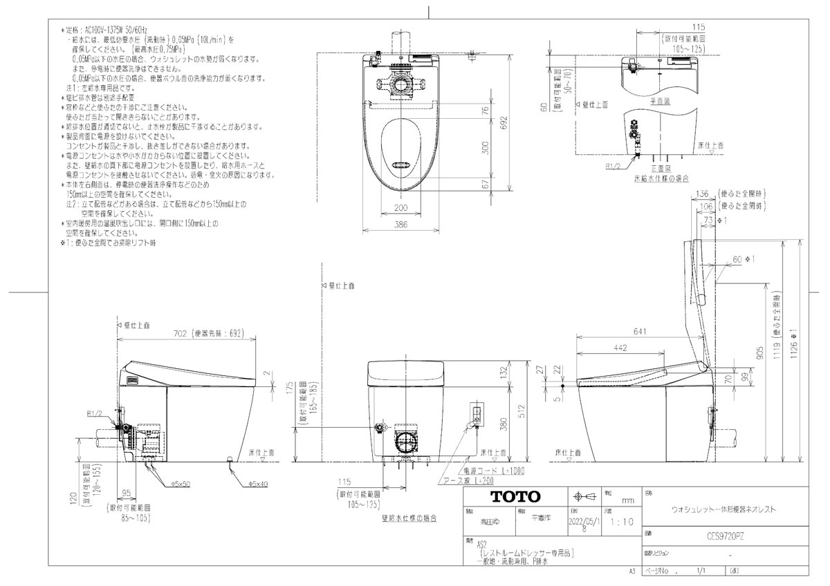 ウォシュレット一体形便器 ネオレスト AS2 レストルームドレッサー専用 壁排水 排水芯120mm