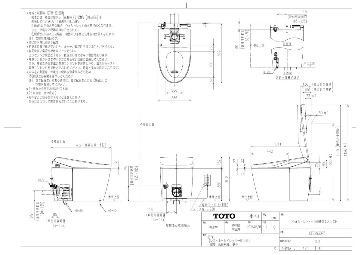 ウォシュレット一体形便器 ネオレスト AS-W レストルームドレッサー専用 壁排水 排水芯120mm