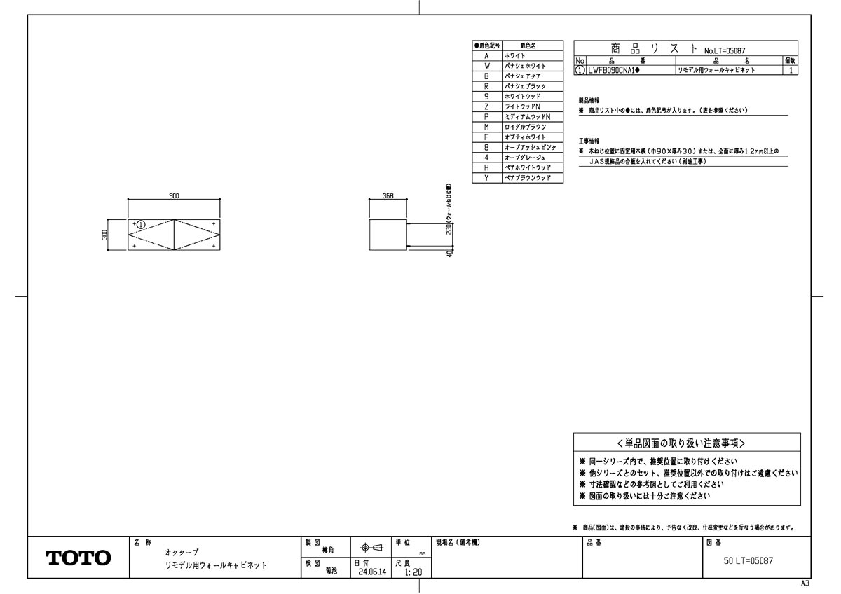 オクターブ リモデル用ウォールキャビネット 2枚扉 幅900mm 高さ300mm