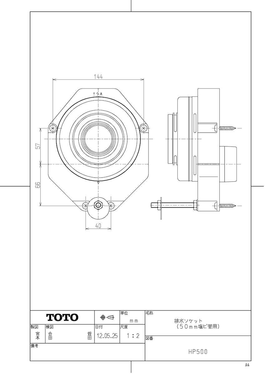 壁排水ソケット(50塩ビ管用)