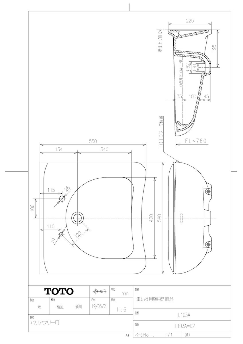 品名:車いす用壁掛洗面器