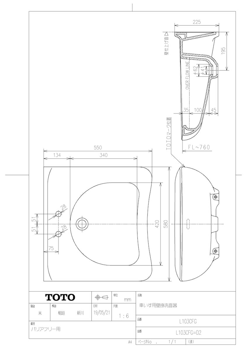 品名:車いす用壁掛洗面器