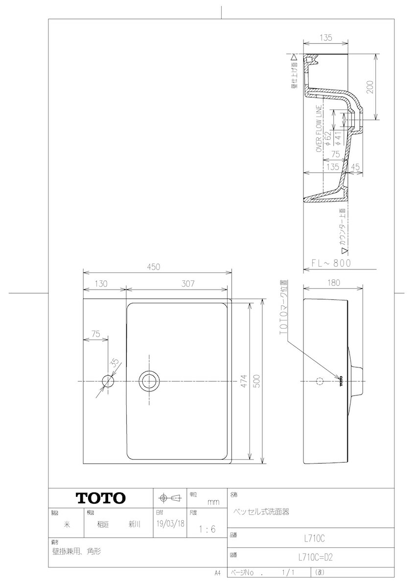 カウンター式洗面器 角形洗面器 ベッセル式