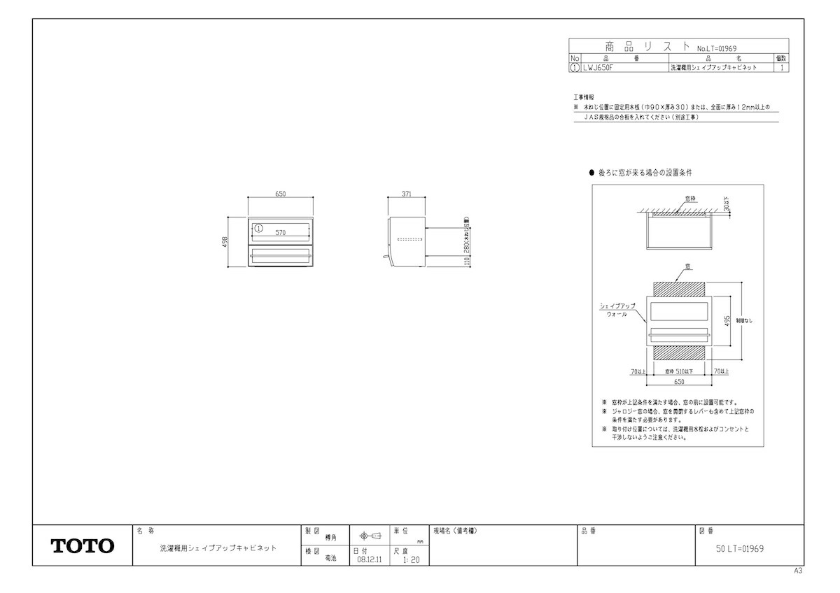 洗面化粧台 洗濯機用シェイプアップキャビネット 間口650