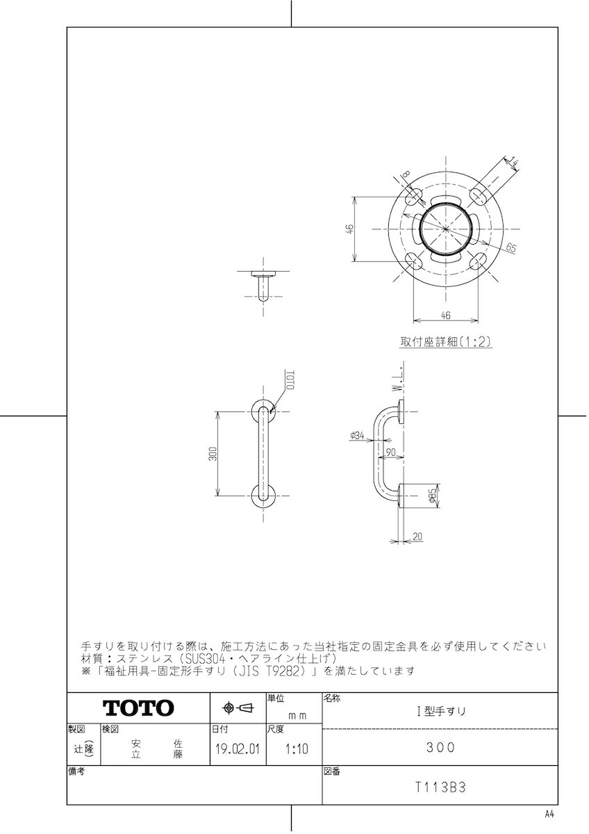 シリーズ名:パブリック用手すりステンレスタイプ(φ34)