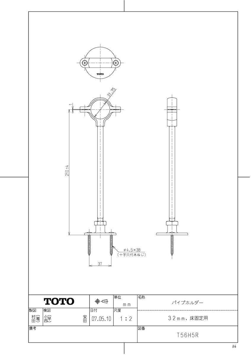 品名:パイプホルダー(32mm、床固定用)