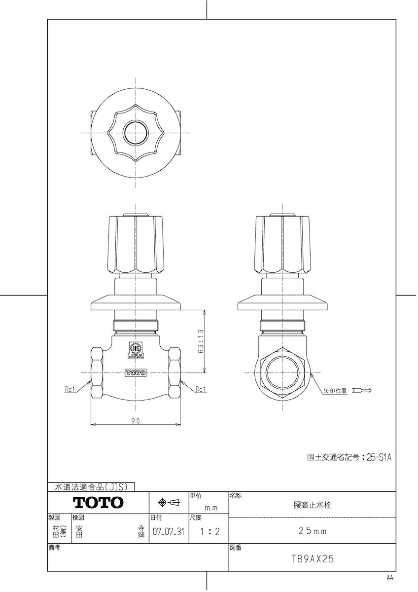 品名:腰高止水栓(25mm)