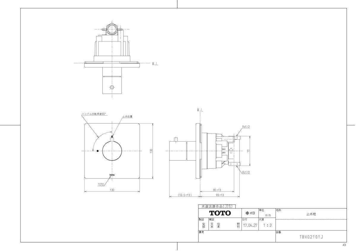 止水栓 埋込式 機能部、埋込部