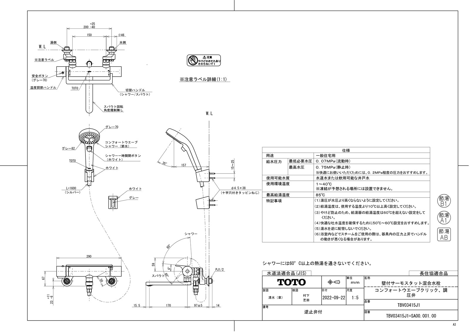 品名:壁付サーモスタット混合水栓(コンフォートウエーブクリック、調圧弁)
