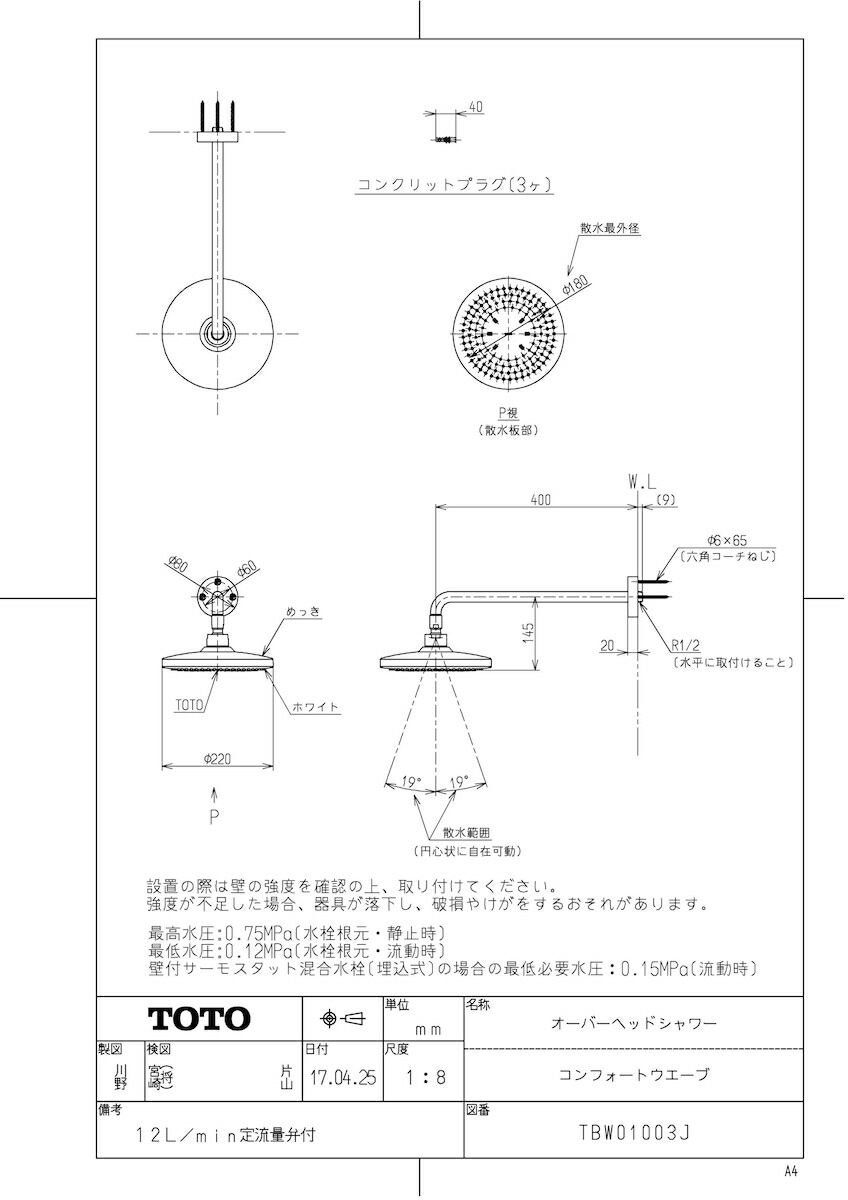 オーバーヘッドシャワー(コンフォートウエーブ)