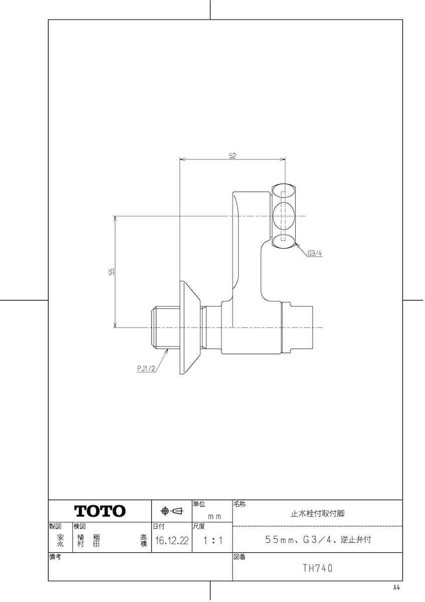 品名:止水栓付取付脚(55mm、G3/4、逆止弁付)