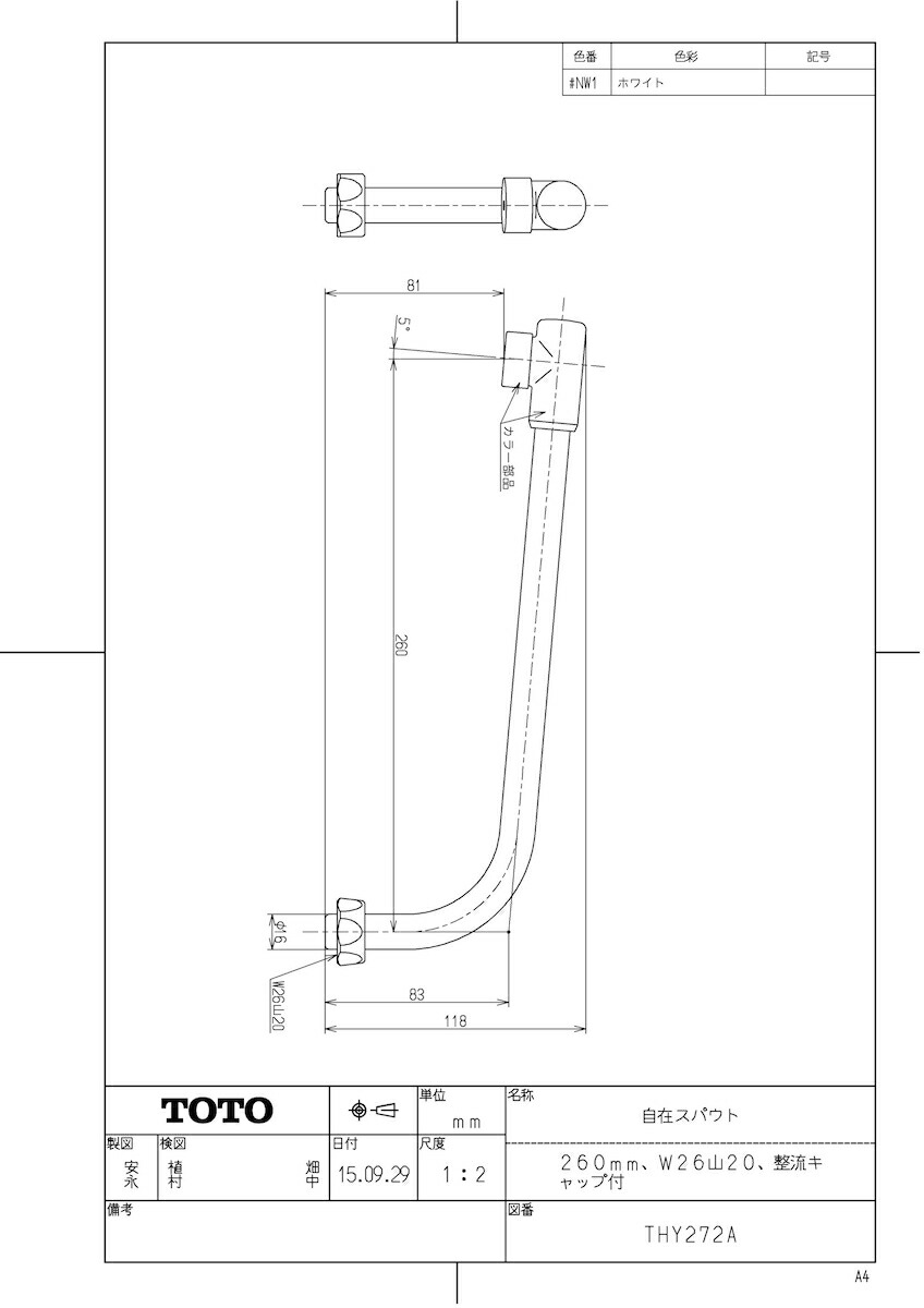 品名:自在スパウト(260mm、W26山20、整流キャップ付)