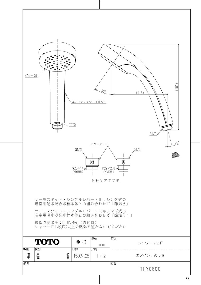 品名:シャワーヘッド(エアイン、めっき)