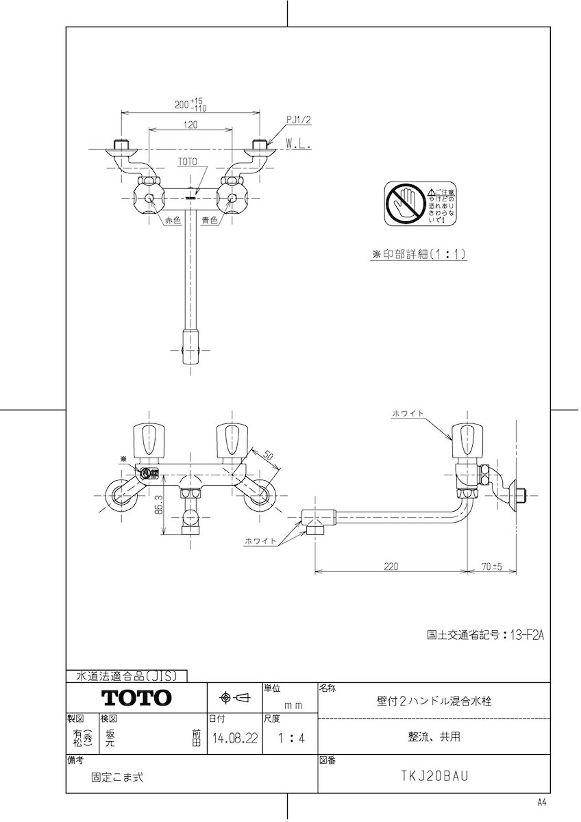 品名:壁付2ハンドル混合水栓(整流、共用)
