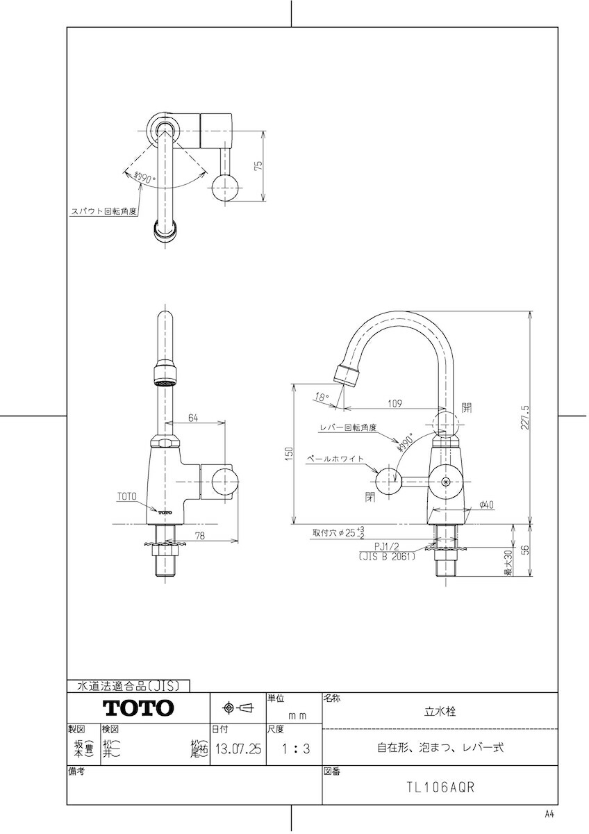 品名:立水栓(自在形、泡まつ、レバー式)