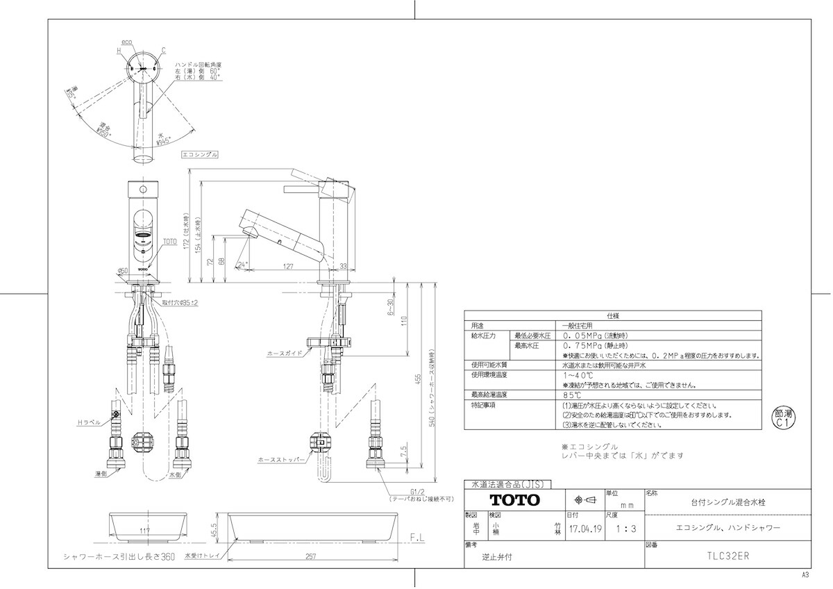 台付シングル混合水栓(エコシングル、ハンドシャワー) ニューウエーブ(コンテンポラリ、NEXT)