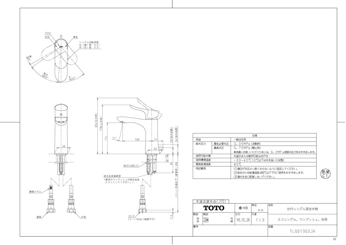 台付シングル混合水栓(エコシングル、ワンプッシュ、共用) 一般