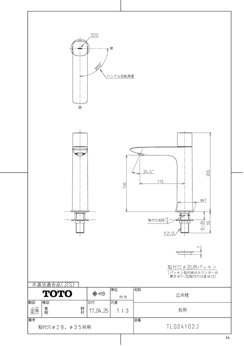 洗面所用水栓 GAシリーズ 単水栓 立水栓 ハンドル回転角度90° 一般地・寒冷地共用