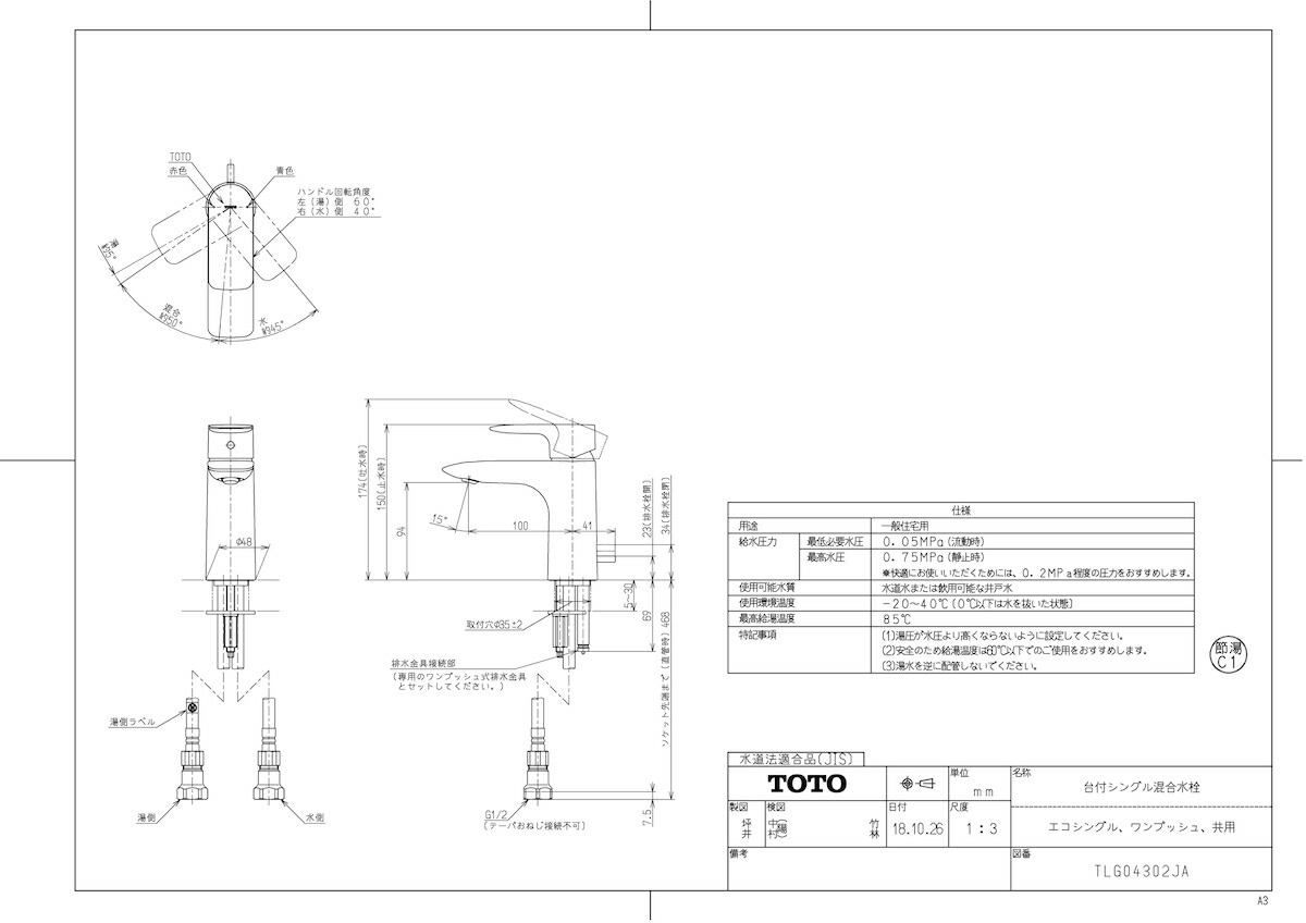 台付シングル混合水栓(エコシングル、ワンプッシュ、共用) 一般