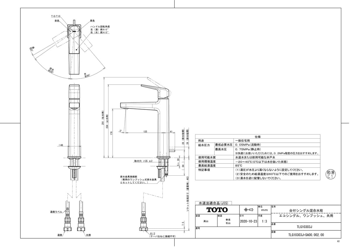 台付シングル混合水栓(エコシングル、ワンプッシュ、共用)