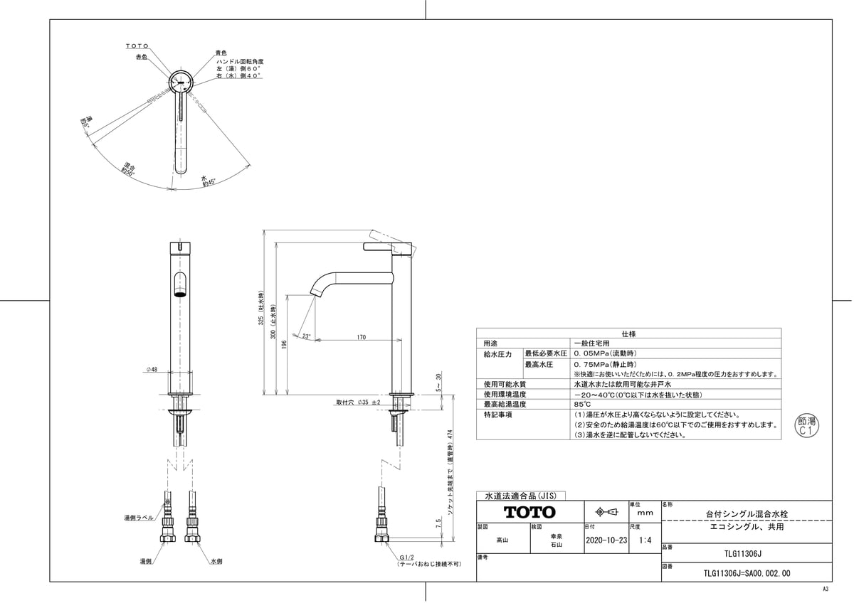 台付シングル混合水栓(エコシングル、共用)