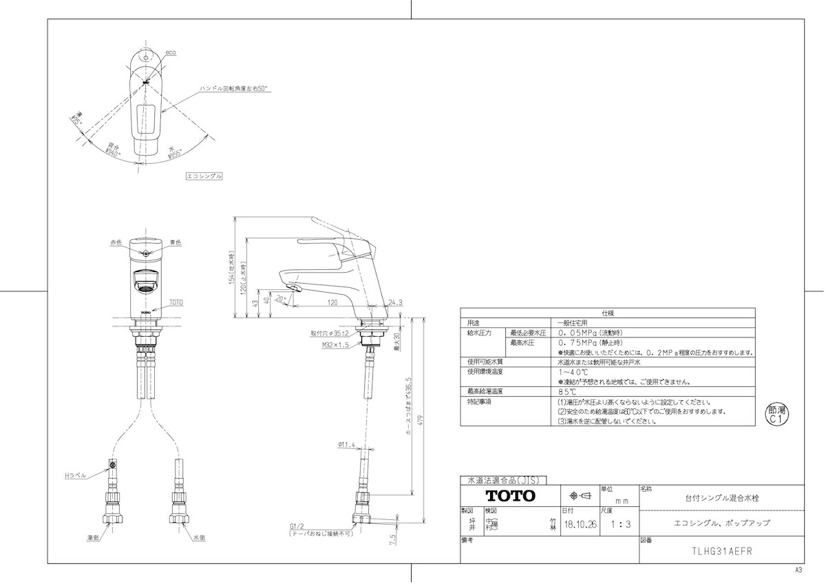 品名:台付シングル混合水栓(エコシングル、ポップアップ)