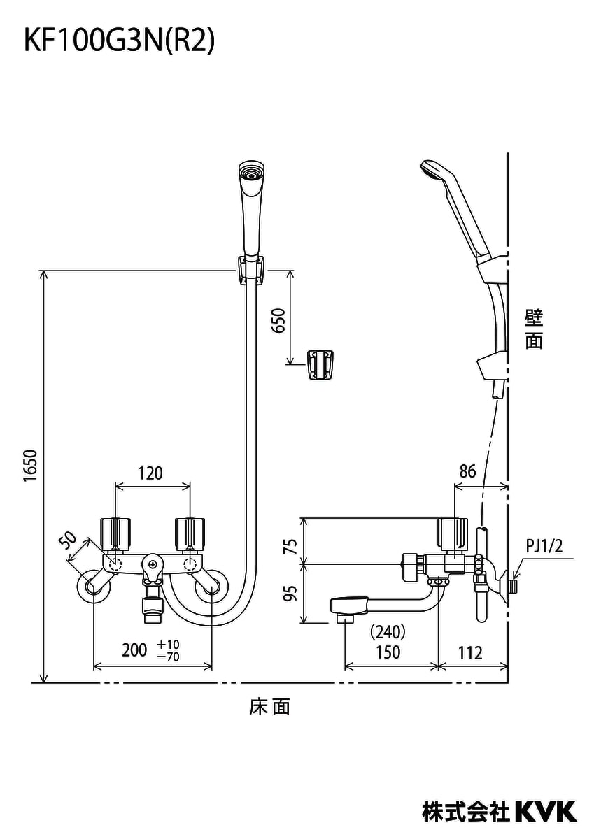 一時止水付2ハンドルシャワー(240mmパイプ付)