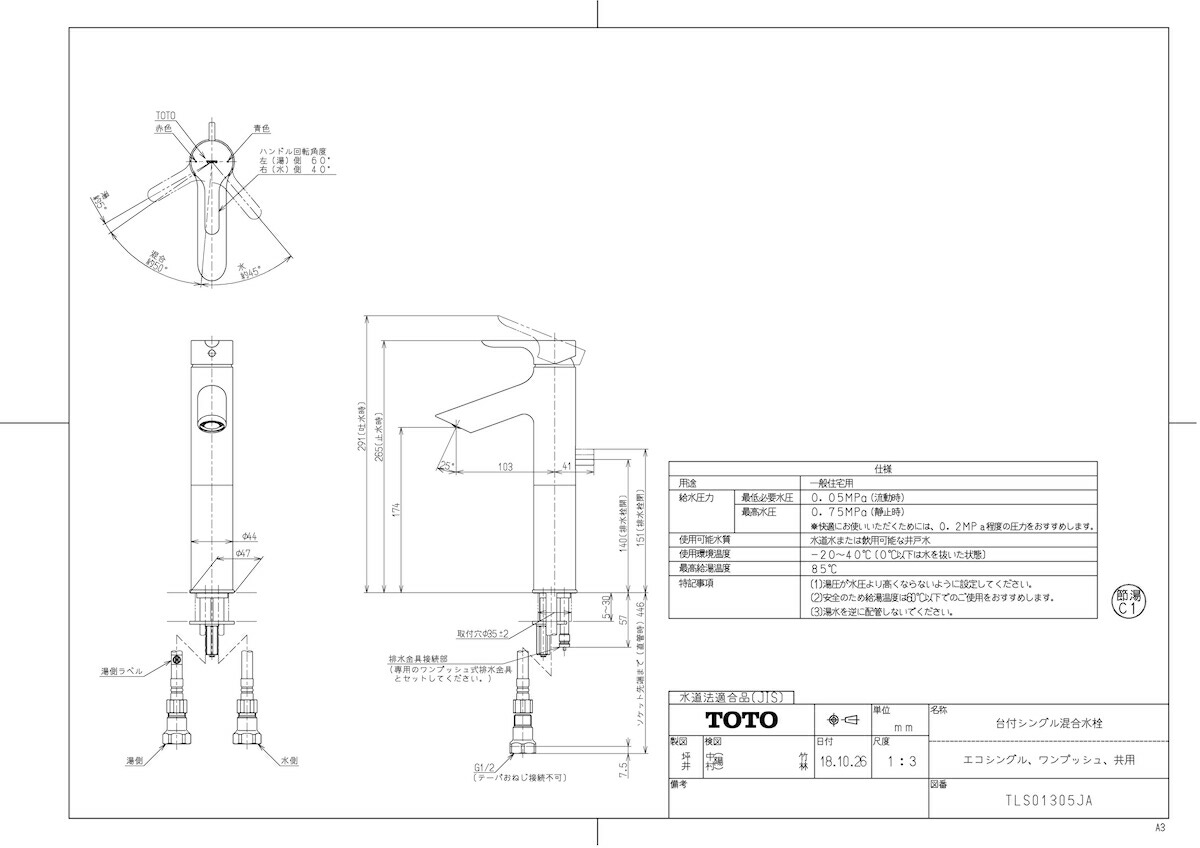 台付シングル混合水栓(エコシングル、ワンプッシュ、共用) 一般