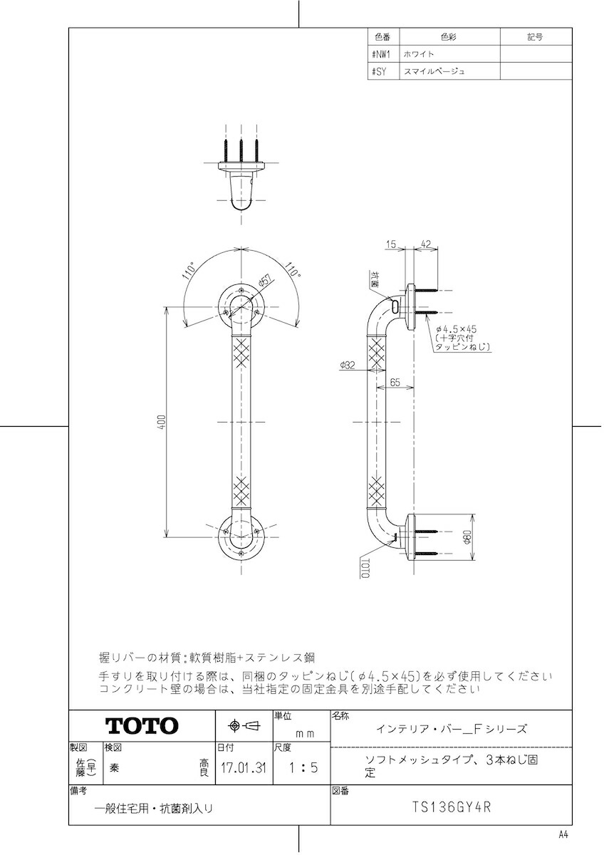 品名:インテリア・バー_Fシリーズ(ソフトメッシュタイプ、3本ねじ固定)