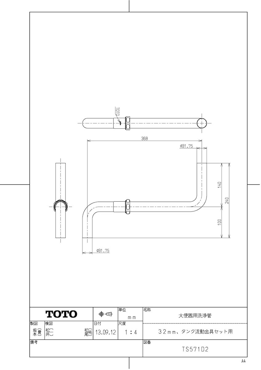 品名:大便器用洗浄管(32mm、タンク流動金具セット用)