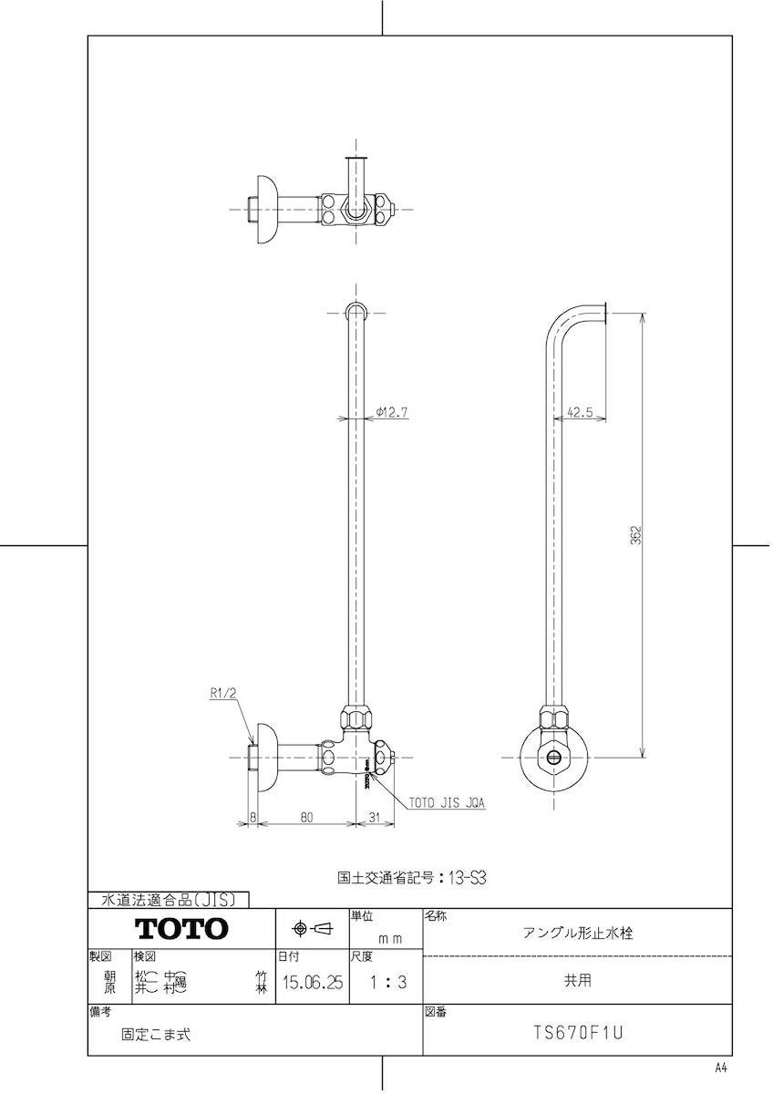 品名:アングル形止水栓(共用)