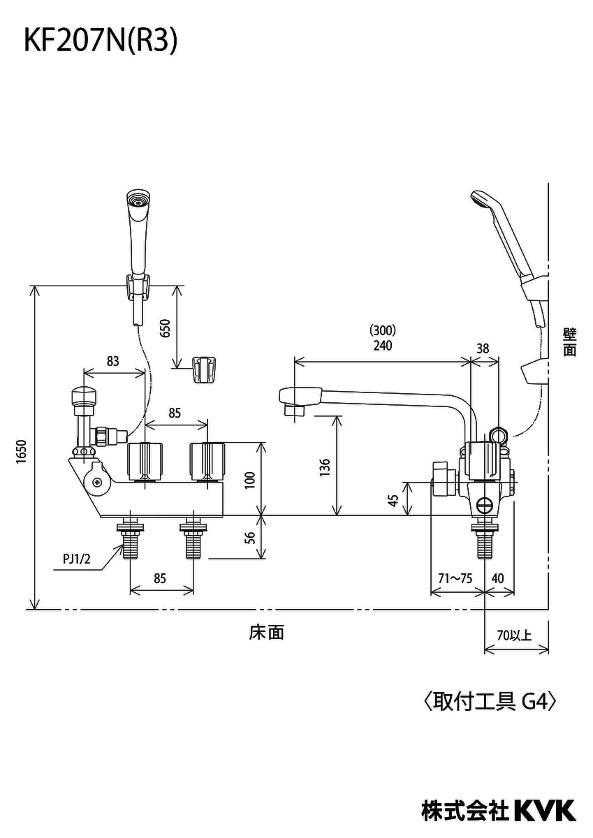●商品名: デッキ型一時止水付2ハンドルシャワー(左側シャワー)240mmパイプ付