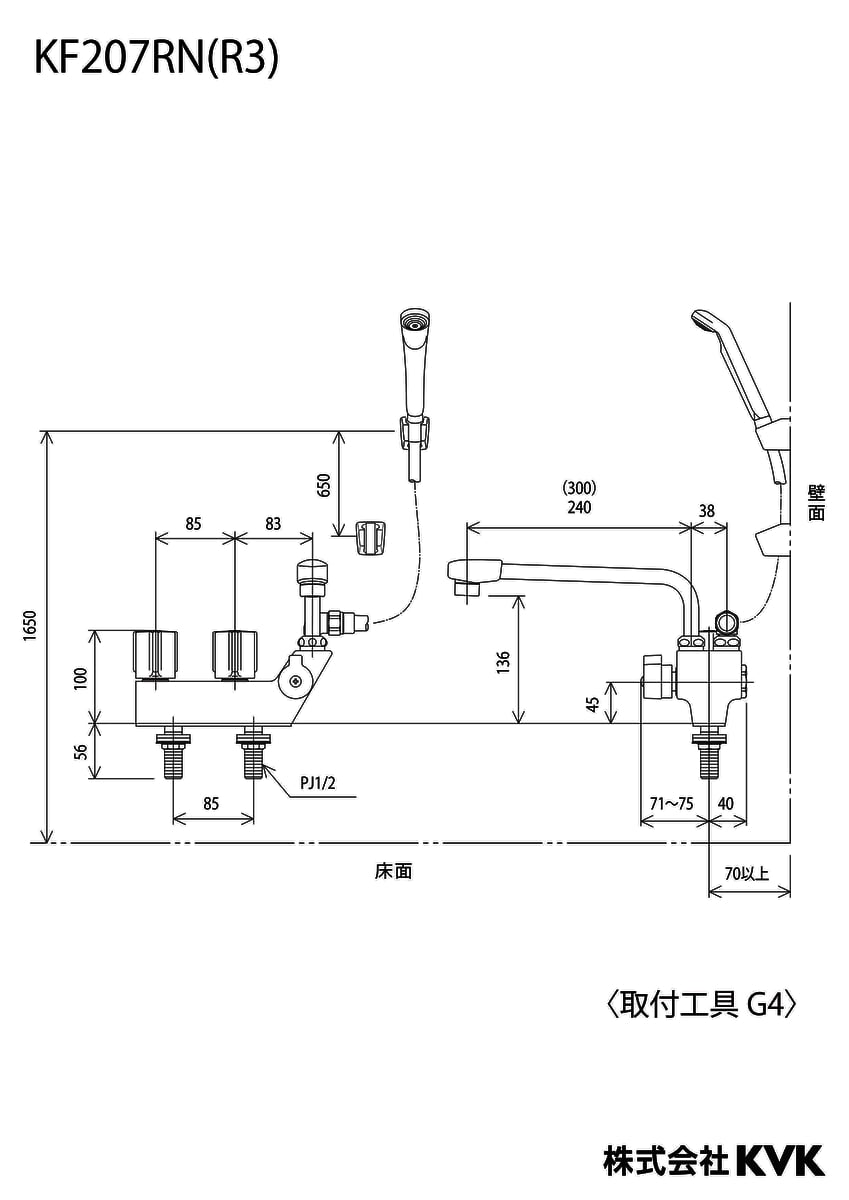 ●商品名: デッキ型一時止水付2ハンドルシャワー(右側シャワー)240mmパイプ付