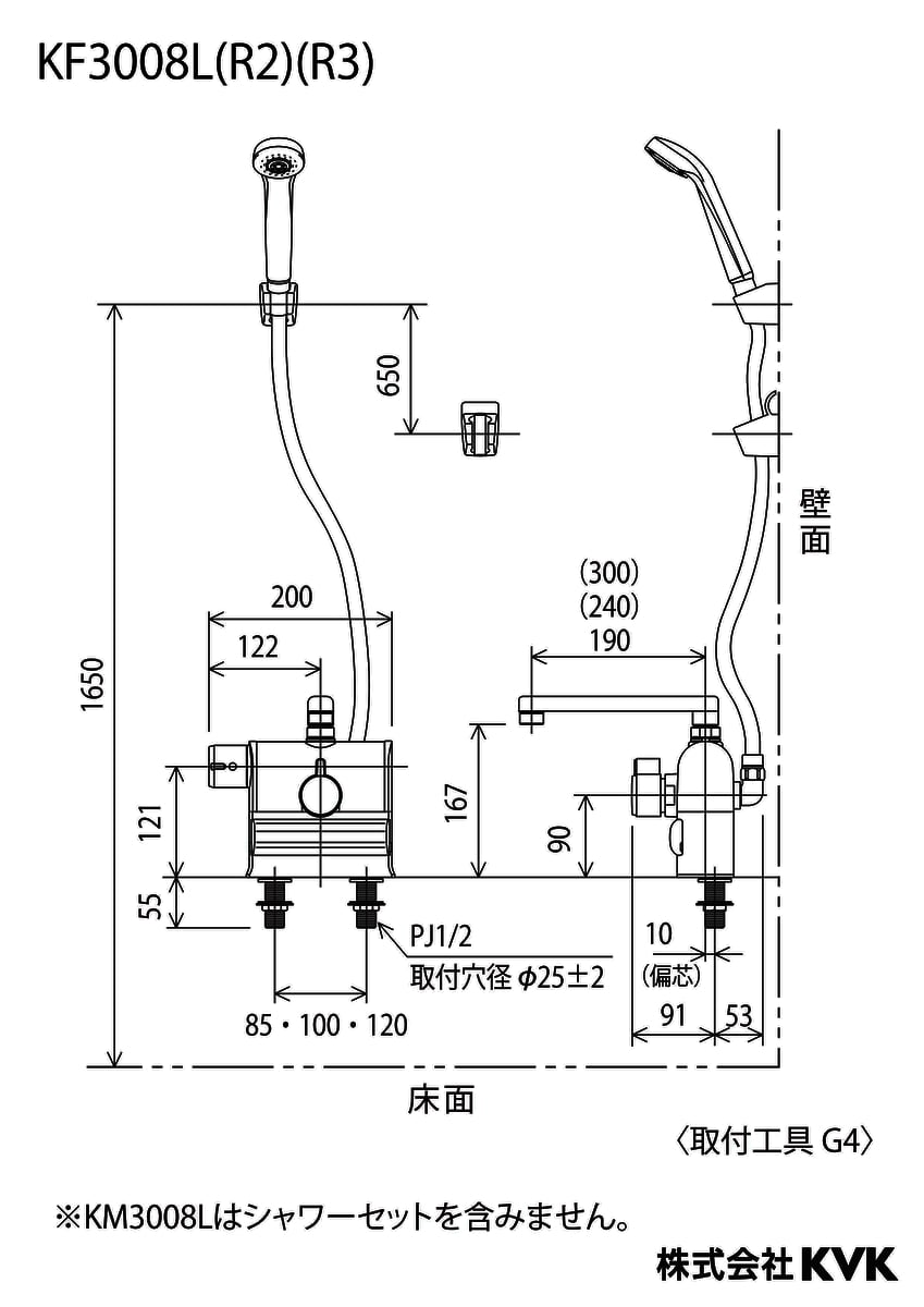 デッキ形サーモスタット式シャワー 左ハンドル仕様 (240mmパイプ付) メッキワンストップシャワーヘッド付